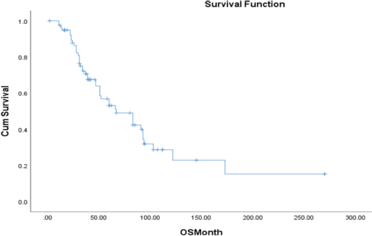 Methods: A retrospective analysis of 80 patients at our tertiary care hospital was conducted from January 2015 to July 2022. Data were analysed using SPSS version 20.0. An independent sample T-test was used for continuous data and the chi-square test for categorical data. Medians and means were calculated for continuous or ordinal variables. Kaplan-Meier survival curves presented progression-free and overall survival (OS), with comparisons made using the log-rank test. Survival rates with 95% CIs were reported, with p < 0.05 considered significant.